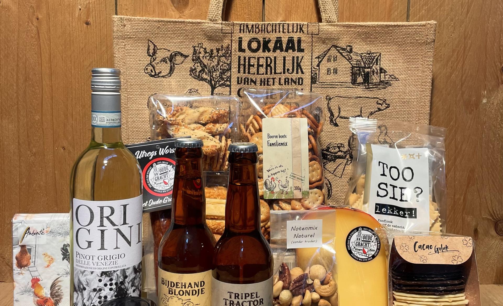 Deze tas is gevuld met lekkers voor zowel de liefhebber voor iets hartigs als zoetigheid. Voor de borrel kun je kiezen uit een mooi glas witte wijn of een lekker fris biertje. Een zoutje, borreltoosie met tapenade en een stukje droge worst doet het hier goed bij