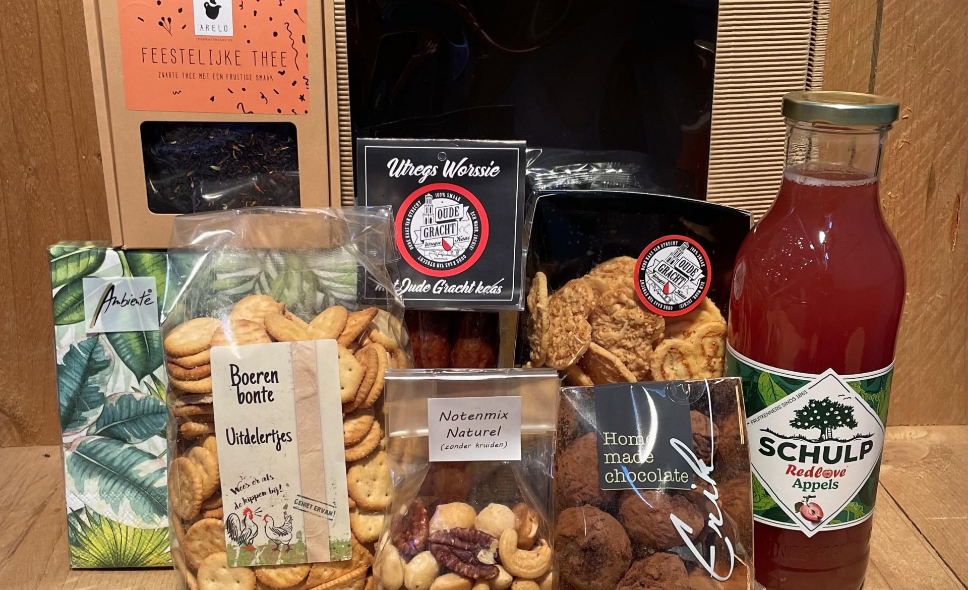 Met box Louie wordt het een feestje. Lekker met een stuk Utrechtse Oudegrachtkaas en notemix. Of toch een kopje feestelijke thee met de lekkerste HomeMade chocolade truffels.